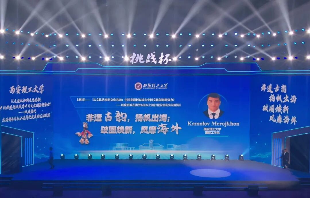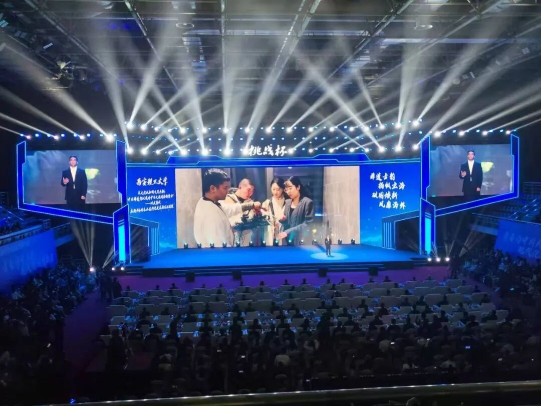 在仪式现场,我校“非遗融贯中外实践队”队员塔吉克斯坦留学生康枫代表团队进行了项目路演展示。在该展示环节中,经过组委会严格遴选,全国仅7项作品入围。我校与清华大学、南京大学、华中科技大学、电子科技大学、南方科技大学、澳门大学等高校团队共同登台展演,充分展现了西理工学子的创新风采。