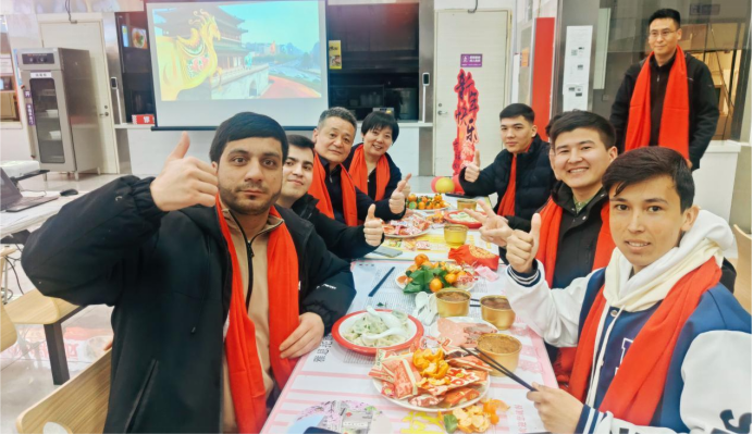 活动期间,后勤处准备了丰盛的年夜饭,柴旺林为学生们送上新春祝福与慰问礼包。参与活动的国际学生纷纷表示,这是一次温暖而难忘的中国年体验,让他们沉浸式感受了中国新年的热闹与温馨,不仅品尝了美味的饺子,更感受到了中国“家”的文化和学校的深切关怀。
