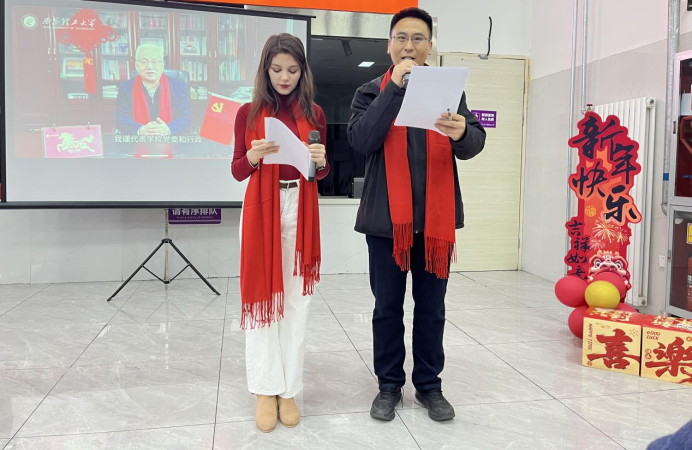 杨媛向全体国际学生致以诚挚的新春祝福。她向同学们讲述了中国年的民俗,除夕是阖家团圆、辞旧迎新的重要时刻,希望大家能在这里感受到家的温暖。